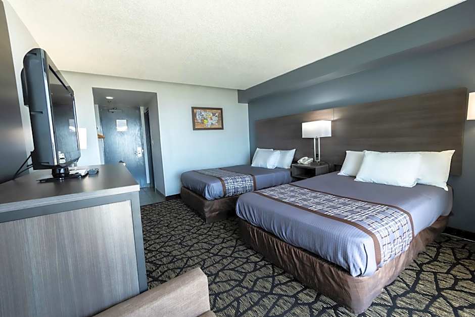 This room features a microwave, refrigerator, flat-screen cable TV and desk.